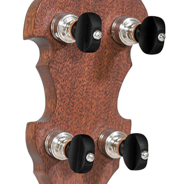 The Gold Tone “Bluegrass Heart” Béla Fleck Signature Banjo is now a reality. Now YOU can play a professional-grade banjo that will provide the closest thing yet to the feel and the tone of Béla’s pre-war masterpiece. Every detail of this instrument is a result of personal, hands-on development by Béla, Marc and Wayne. The finest components available are used to optimize the sound and the playing experience. The Prucha Presto tailpiece, Rickard Cyclone 10:1 tuning machines (with custom, red-anodized brass buttons for added peghead mass), custom bridge and Little Mountain armrest all do their part to enhance tuning ease and stability, full-bodied tone and playing comfort.